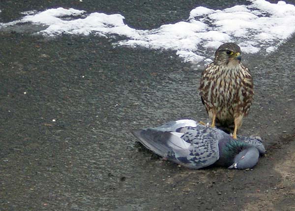 This Ontario law generally applies only to those birds not covered by the federal MBCA. Birds protected by the Fish and Wildlife Conservation Act (FWCA) are: pelicans, cormorants, vultures, ospreys, kites, eagles, hawks, caracaras, falcons, partridges, pheasants, grouse, ptarmigan, turkey, quail, owls, kingfishers, jays, nutcrackers, magpies and ravens. The FWCA does not protect the following six birds or their nests and eggs in most of Ontario: American Crow, Brown-headed Cowbird, Common Grackle, Red-winged Blackbird, European Starling, and House Sparrow. However, the Act does protect these six birds in provincial parks and provincial crown game preserves. Rock Doves are also not protected because they are introduced domesticated birds gone feral. However, one must have a hunting licence to hunt even unprotected birds. In addition, the FWCA regulates the seasons and limits of gallinaceous birds; that is, partridge, pheasant, grouse, ptarmigan, turkey and quail, which may be hunted with a provincial hunting licence. Interestingly, the FWCA allows the killing of birds, except birds protected by the MBCA and the ESA, in defence of property. For example, farmers do not need a permit to kill a hawk attacking their chickens.
