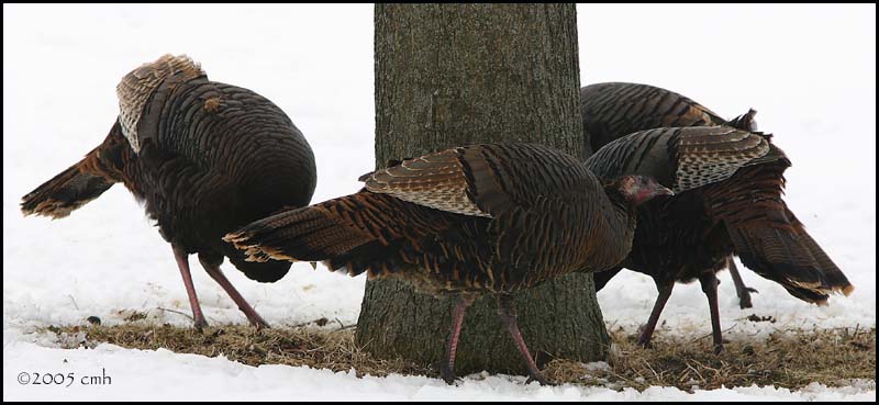 At the north end of the village of Minesing we drove west to the end of Ronald Road seeing 2 (Prairie) Horned Lark en route. We saw our first 2 Red-tailed Hawk of the day and walking down the lane to the flooded Nottawasaga River, found a well scavenged Wild Turkey carcass, but no-one wanted to make a wish. We had both Downy and Hairy Woodpecker in the wet woodland and 4 Wilson's Snipe overhead. The list for the day was 57 species.
